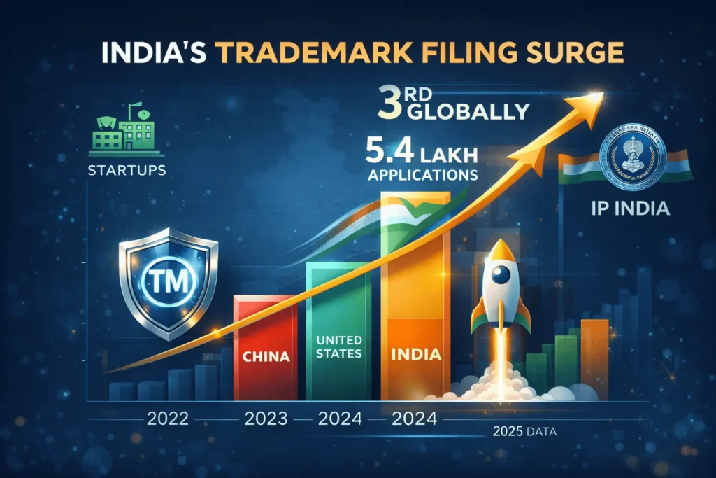 In 2024, India filed nearly 5.4 lakh trademark applications, ranking third globally and showing startups’ growing focus on IP protection. StartupMandi helps streamline this for entrepreneurs.